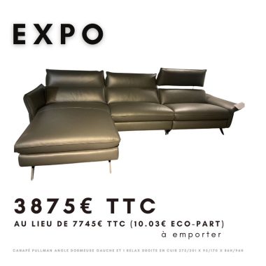 Canapé Pullman angle dormeuse gauche et 1 relax droite en cuir